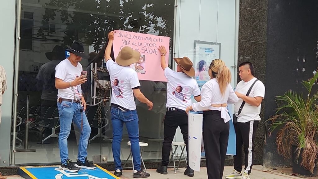 Rhosember Fernández, oriundo de Villanueva, Casanare, se encadenó este martes frente a la sede de la Nueva EPS en Yopal como forma de protesta para exigir el traslado urgente de su hija Salomé, una bebé de tres meses que permanece hospitalizada desde hace 14 días en el Hospital Regional de la Orinoquía (HORO).
