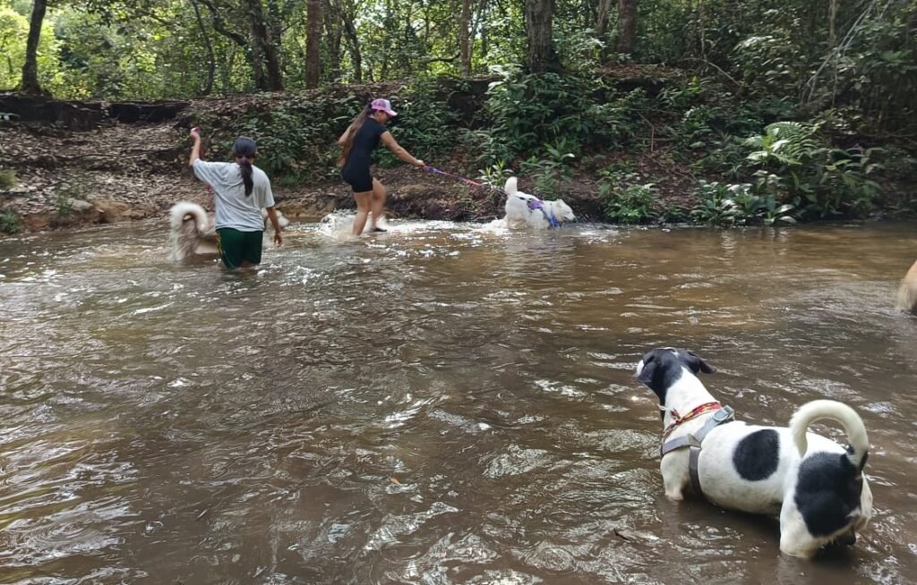 El recorrido, de aproximadamente tres kilómetros, avanzó por el sendero del colegio entre zonas de sombra, pequeñas llanuras y puntos donde el grupo se detenía para pasar las tablas sobre los caños. A lo largo del trayecto, perros de distintos tamaños interactuaron entre sí, exploraron el terreno y aprovecharon los caños del sector para refrescarse. Varios participantes señalaron que para muchos animales este tipo de actividades representa una oportunidad para liberar energía que difícilmente pueden descargar dentro de las viviendas.