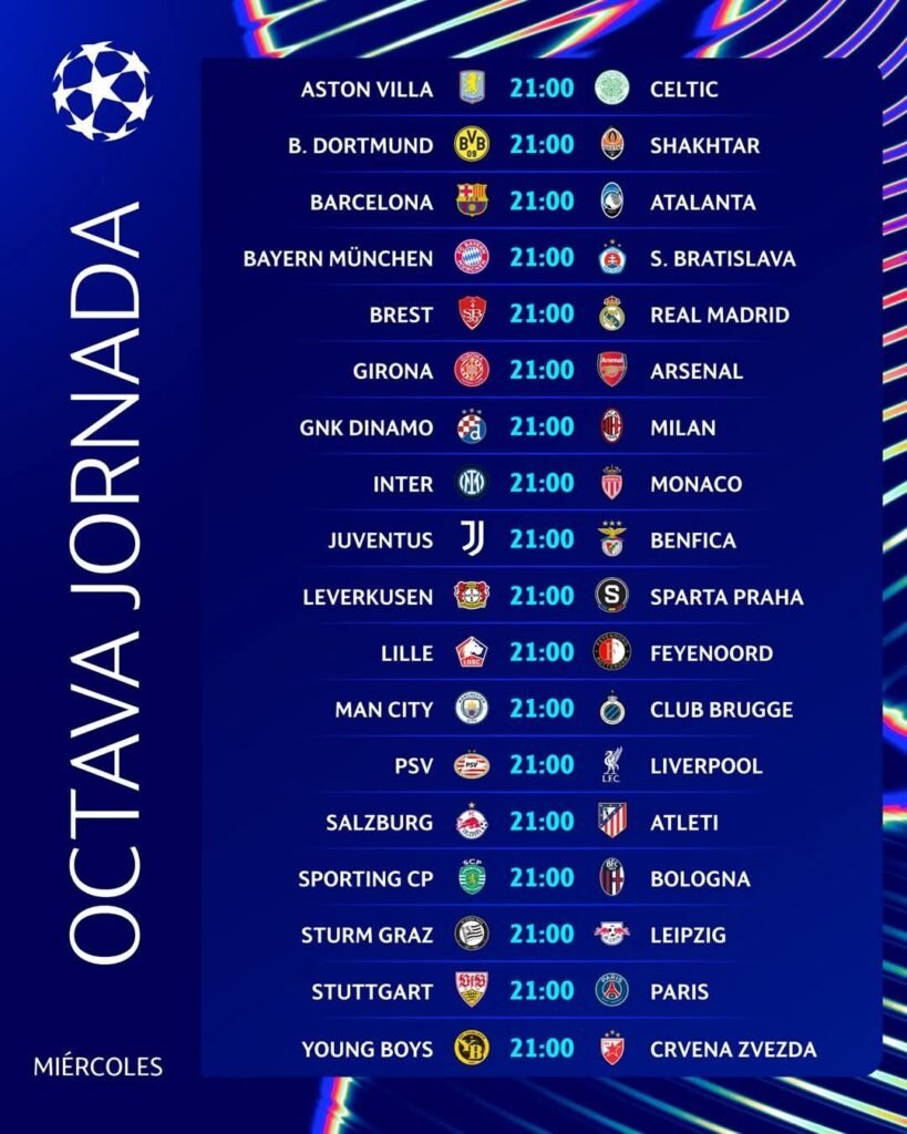 Partidos correspondientes a la octava jornada de la UEFA Champions League 2025