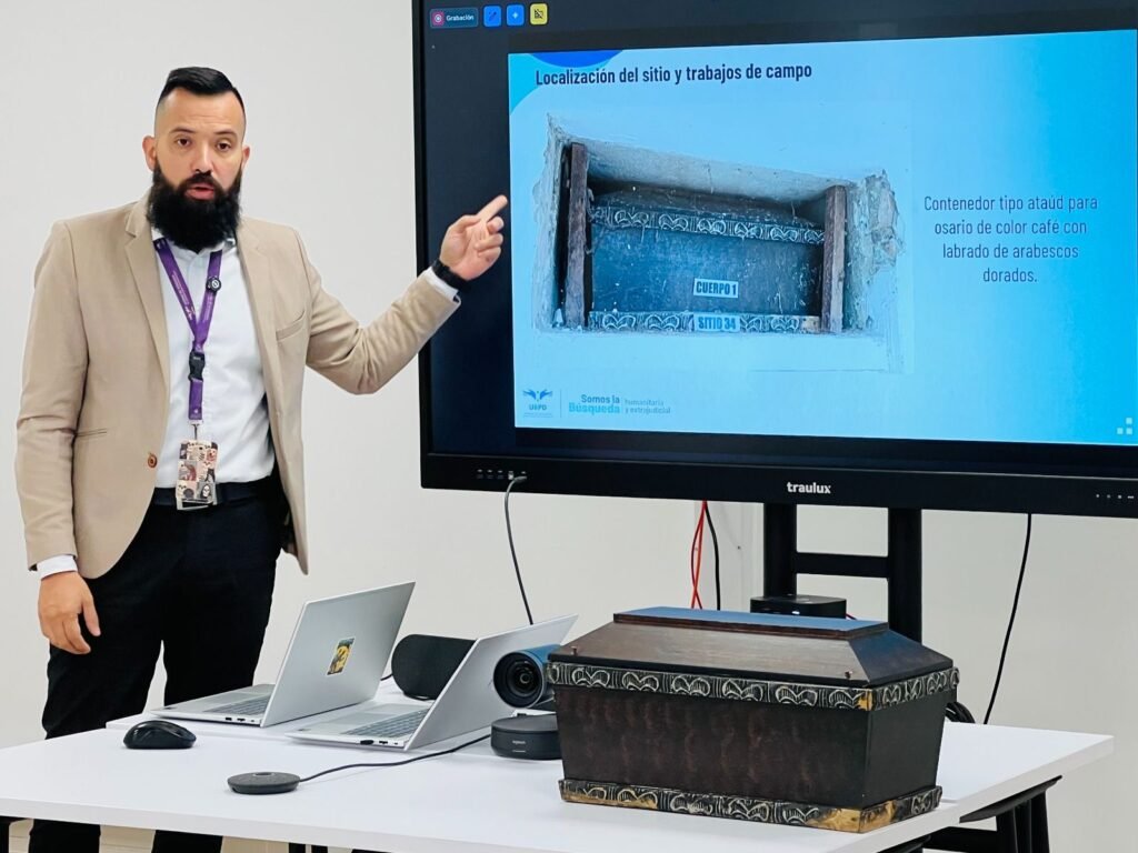 La confirmación es el resultado de más de dos años y medio de investigación humanitaria y extrajudicial. El 19 de junio de 2024, en el cementerio municipal Campo Hermoso de Bucaramanga, un equipo interdisciplinario de la UBPD recuperó una urna funeraria de color caoba cuya descripción coincidía con registros históricos recopilados durante el proceso.